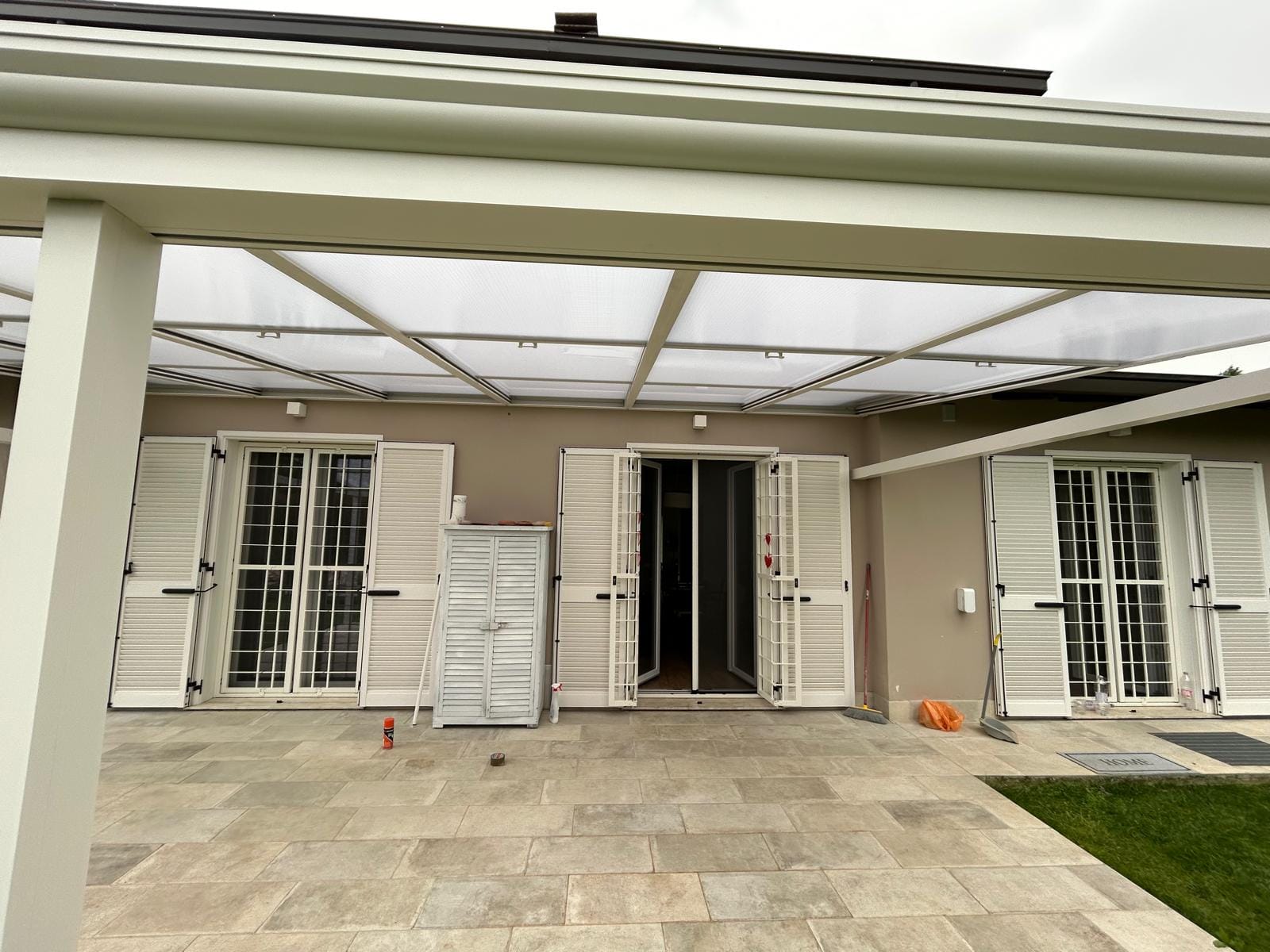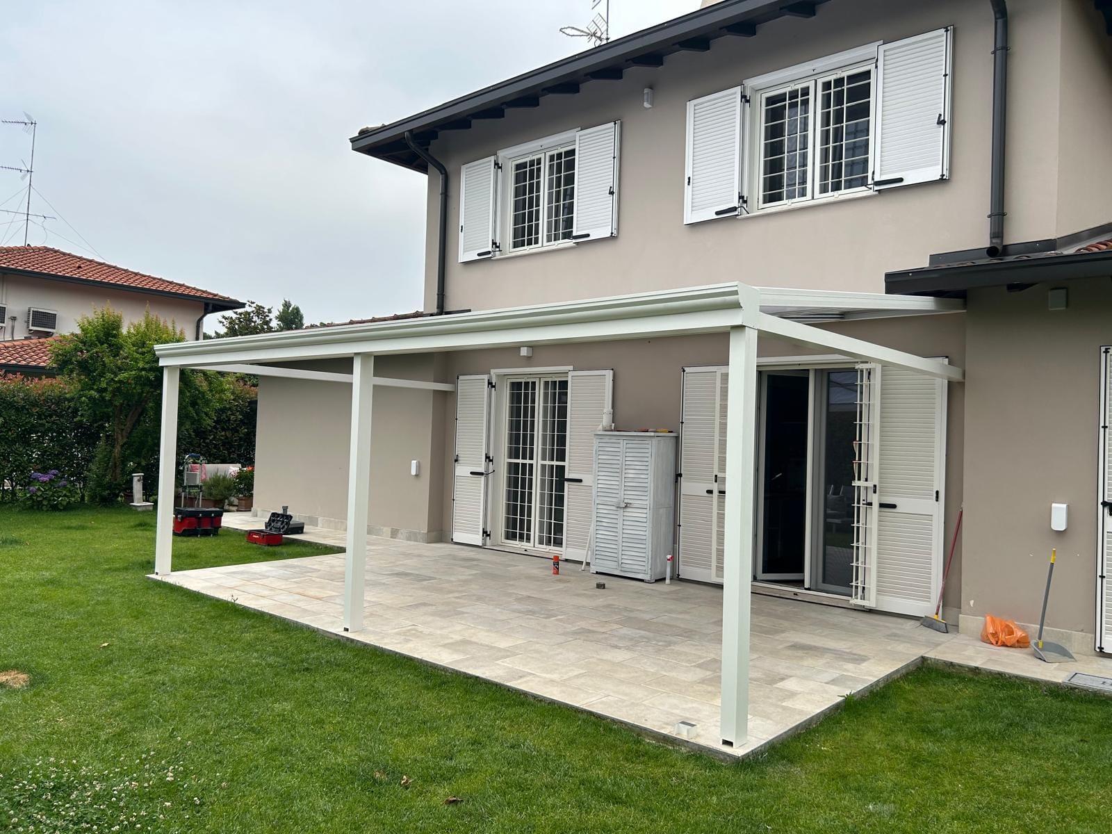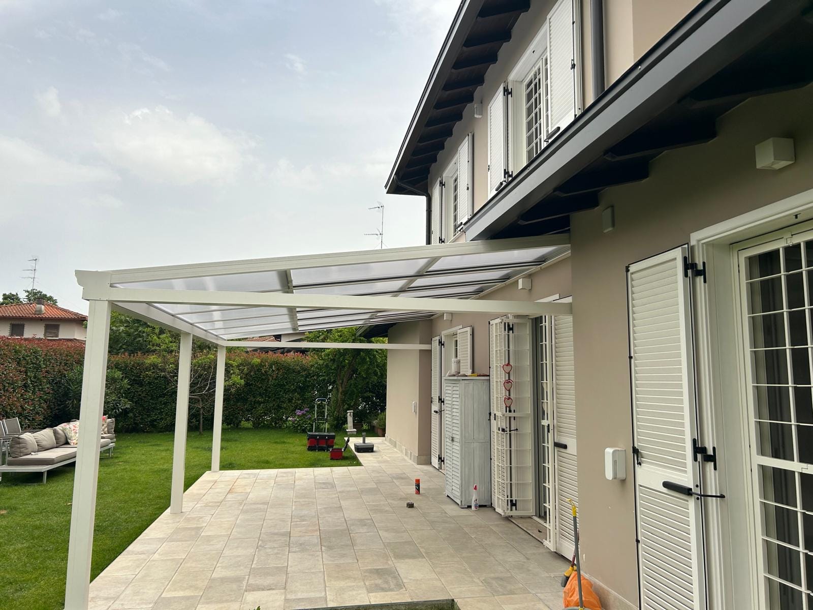 Installazione di pergola in splendida villa in provincia di Milano